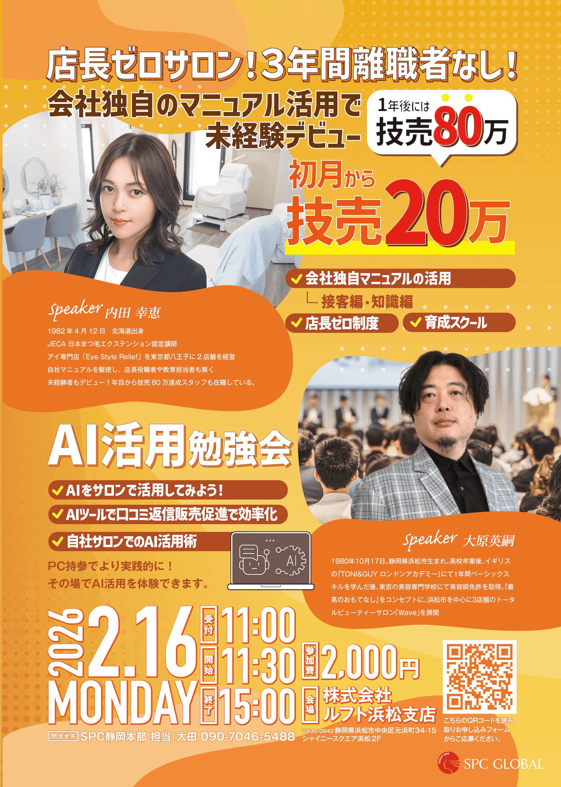 入会前後で店舗数やスタッフ数は変わっていませんが、年商は約2倍に成長しました。数字以上に大きかったのは、自分自身の意識の変化です。SPCで多くの経営者に出会い、考え方や視点が大きく広がりました。